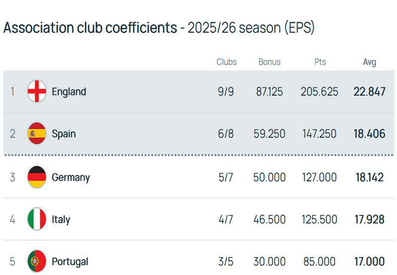 阿森纳成关键变量!西甲与德甲激烈争夺前二,意甲或再次无缘欧冠额外奖励